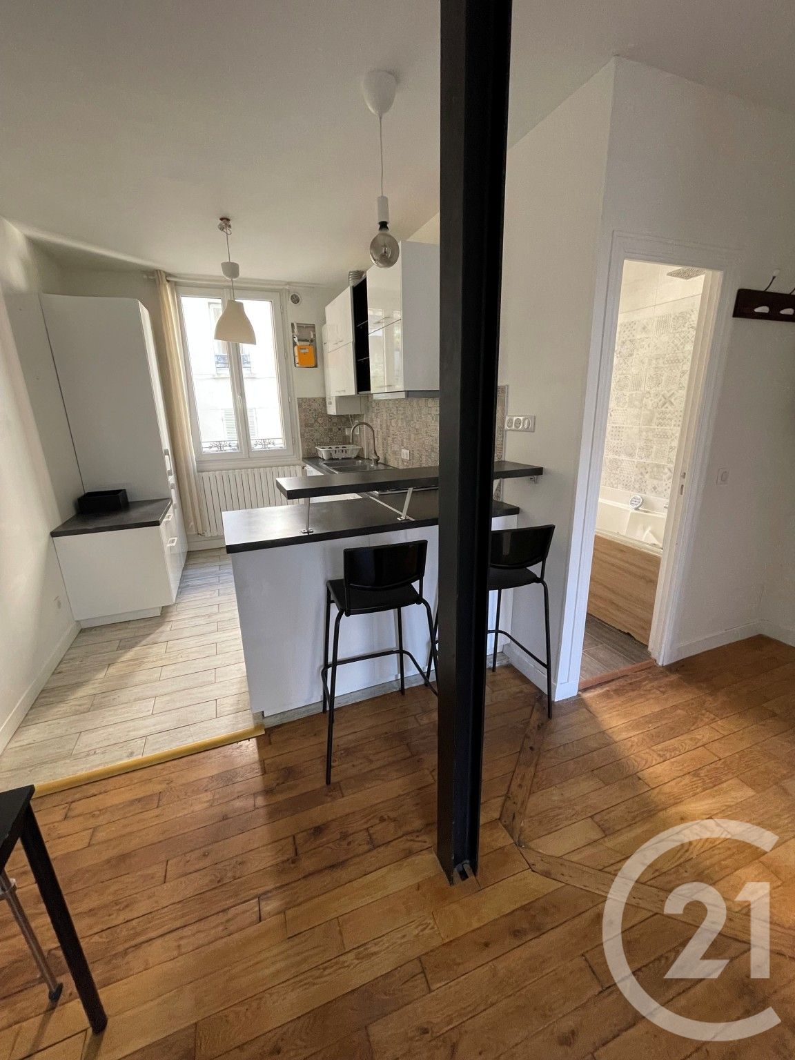 Rue du Château, dans un immeuble des années 30 appartement en retrait de la rue, idéalement disposé et composé comme suit: entrée, cuisine américaine ouverte sur le séjour, chambre indépendante, salle de bains avec baignoire.